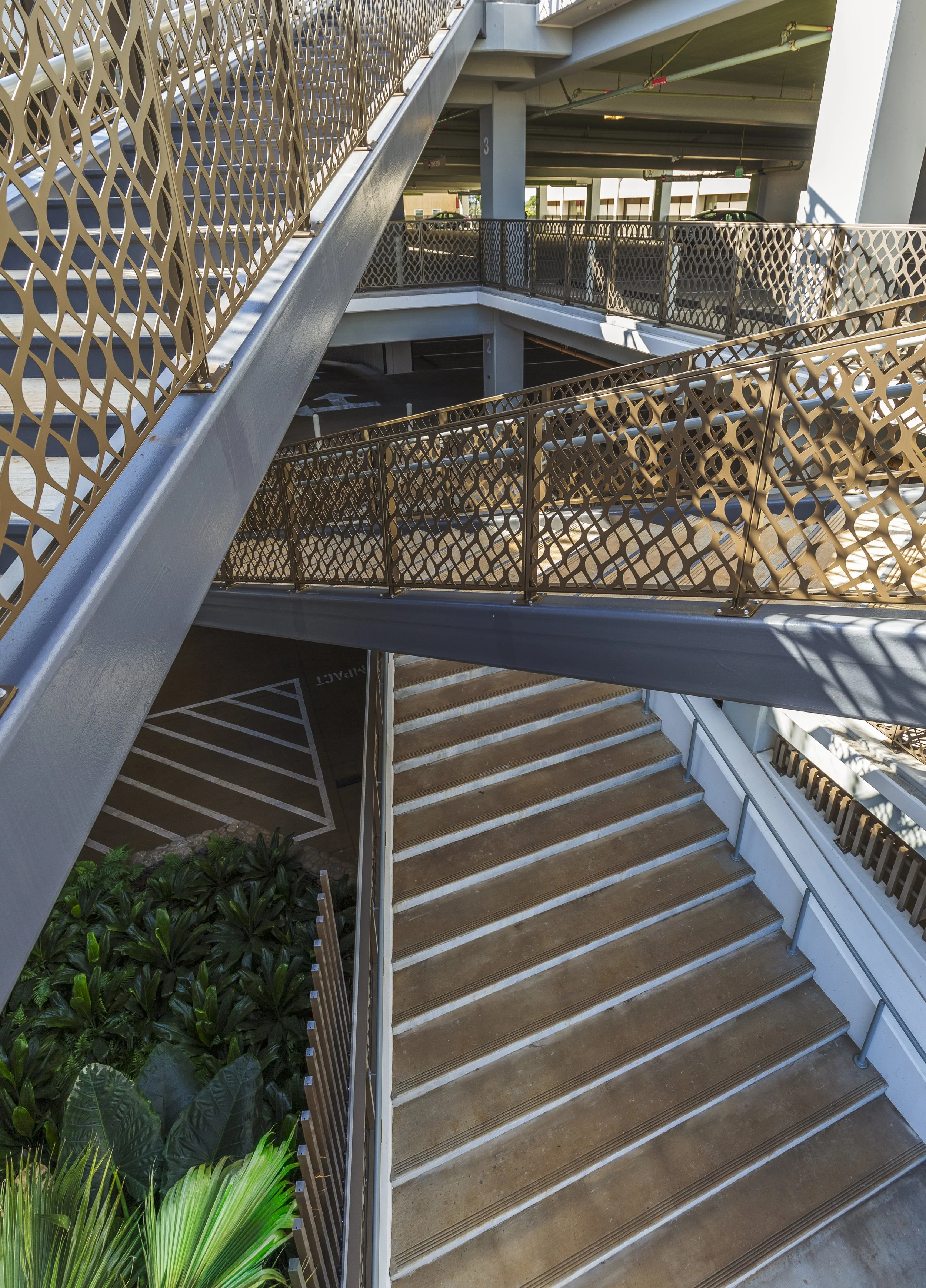 The vision for the Downtown Wailuku parking garage goes beyond functionality, aiming to serve as a vibrant community hub that enhances energy and economic vitality. Its design emphasizes seamless integration with the urban fabric, cultural homage, clear wayfinding, and expanded parking capacity. The structure harmonizes with surrounding buildings, incorporates architectural details reflecting Wailuku’s heritage, and features vibrant signage for easy navigation. Key elements include vehicle circulation via Church and Pili Streets, pedestrian pathways linking Market and Church Streets, and a retail promenade along the east edge. Thoughtful pedestrian access, EV charging infrastructure, and a versatile first level with a 14-foot ceiling for markets and events further position the garage as a dynamic space for community gatherings and cultural activities.