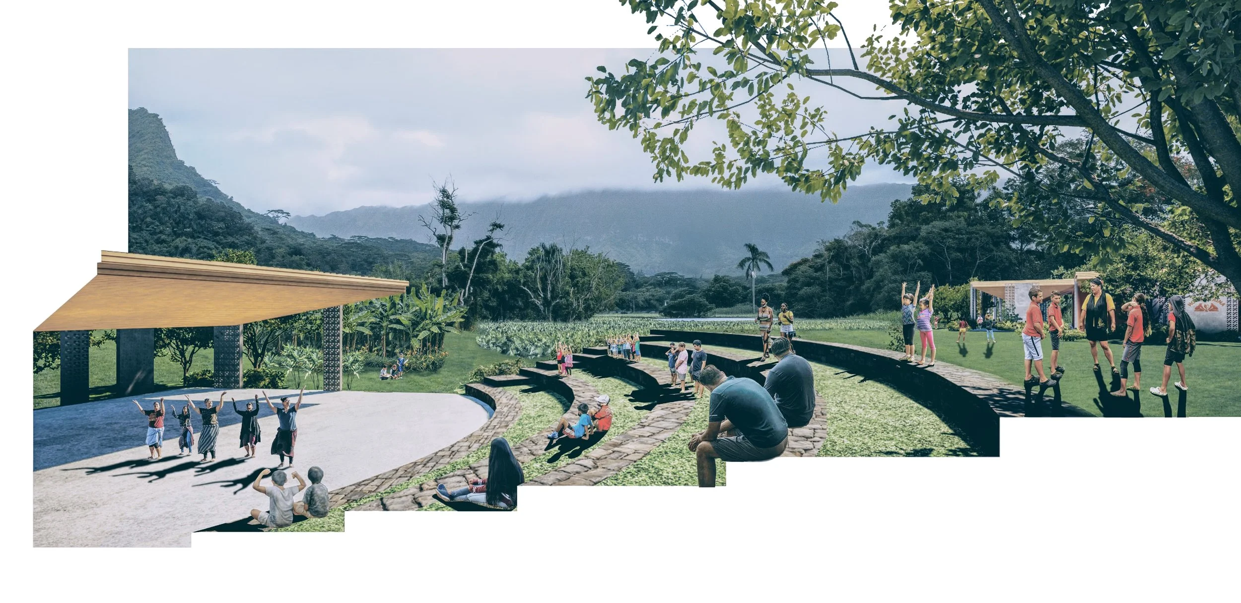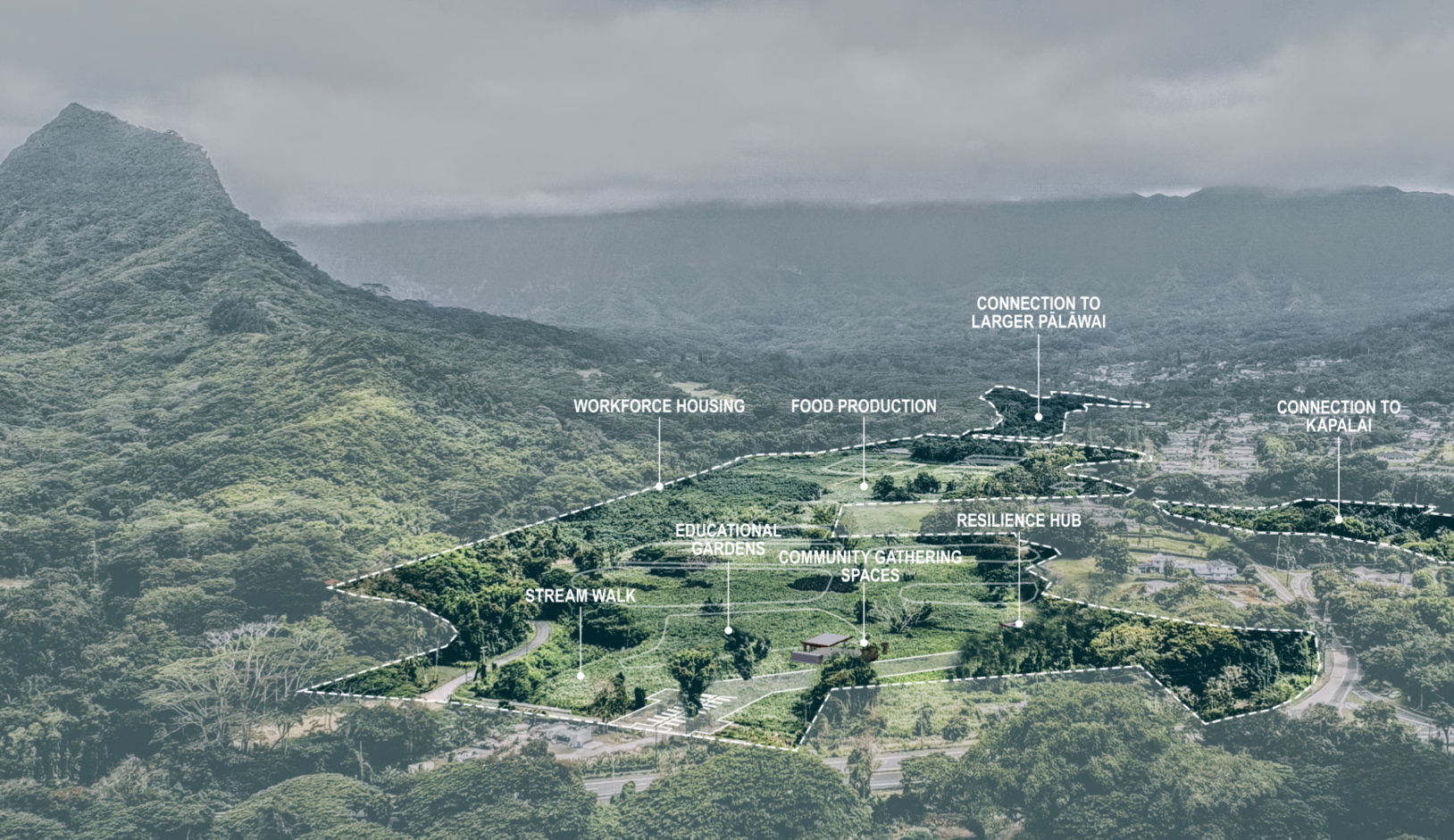 This master plan envisions a puʻuhonua - a place of refuge - where ancestral wisdom, innovation, and economic empowerment converge to strengthen Kailua’s ahupuaʻa. In additiona to the resilience hub, the plan focuses on restoring life-giving water pathways and Maunawili Stream to heal ecosystems and enhance climate resilience, while advancing food sovereignty through culturally grounded, sustainable agriculture that increases local food access and reconnects families to ʻāina. It also establishes leadership and green job pathways rooted in Hawaiian values and ʻāina stewardship, ensuring a sustainable resident workforce dedicated to mālama ʻāina for generations to come.