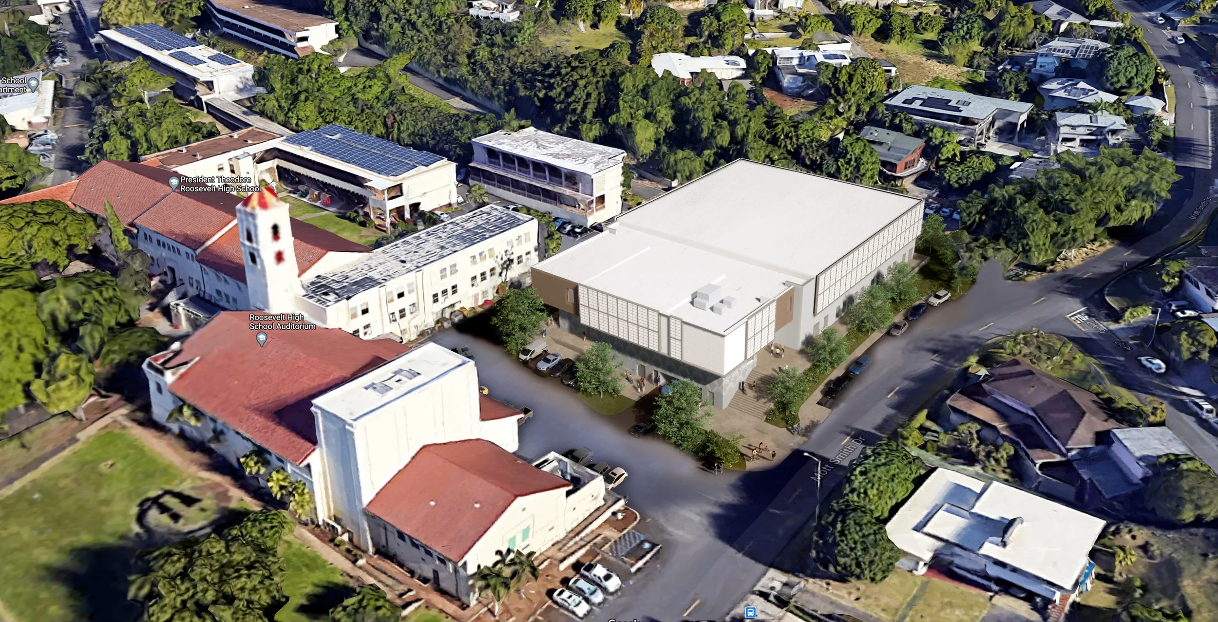 President Theodore Roosevelt High School (RHS) was founded in 1930. Its existing gym has roots to the earliest years of the RHS campus as an openair compound with grass play courts for girls. Later in the 60s, it was enclosed to act as a formal gymnasium but has always been limited by its size and has not provided adequate space and support functions meeting Department of Education (DOE) standards.